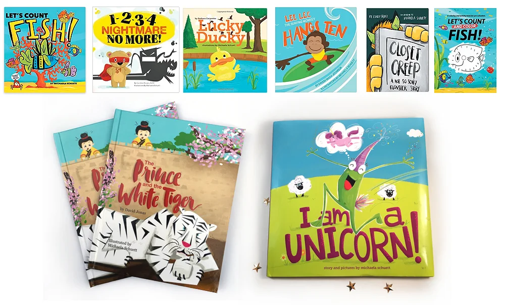 - Let's Count and Color Fish design and illustration by Michaela Schuett (self-published)